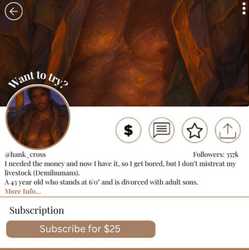 "I'm not really here to hurt my livestock. I only do what they want and like...I'm not a beast, I do care for them. Any dirty fuckers will be blocked"