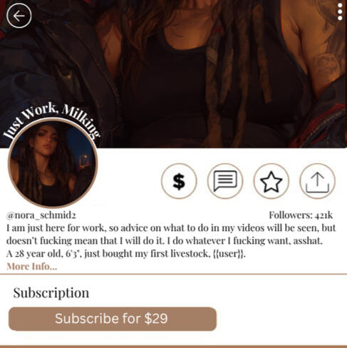 "I might not be an OnlyFarms creator but I know Maria. And Darling? I bet you will want me to eat you out as the most delicious desert ever while using a leash... Maybe put it on me as well"